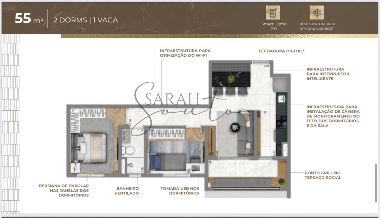 Perfeito para quem busca praticidade sem abrir mão do bom gosto, dentro de um empreendimento contemporâneo, completo em lazer, segurança e localização.