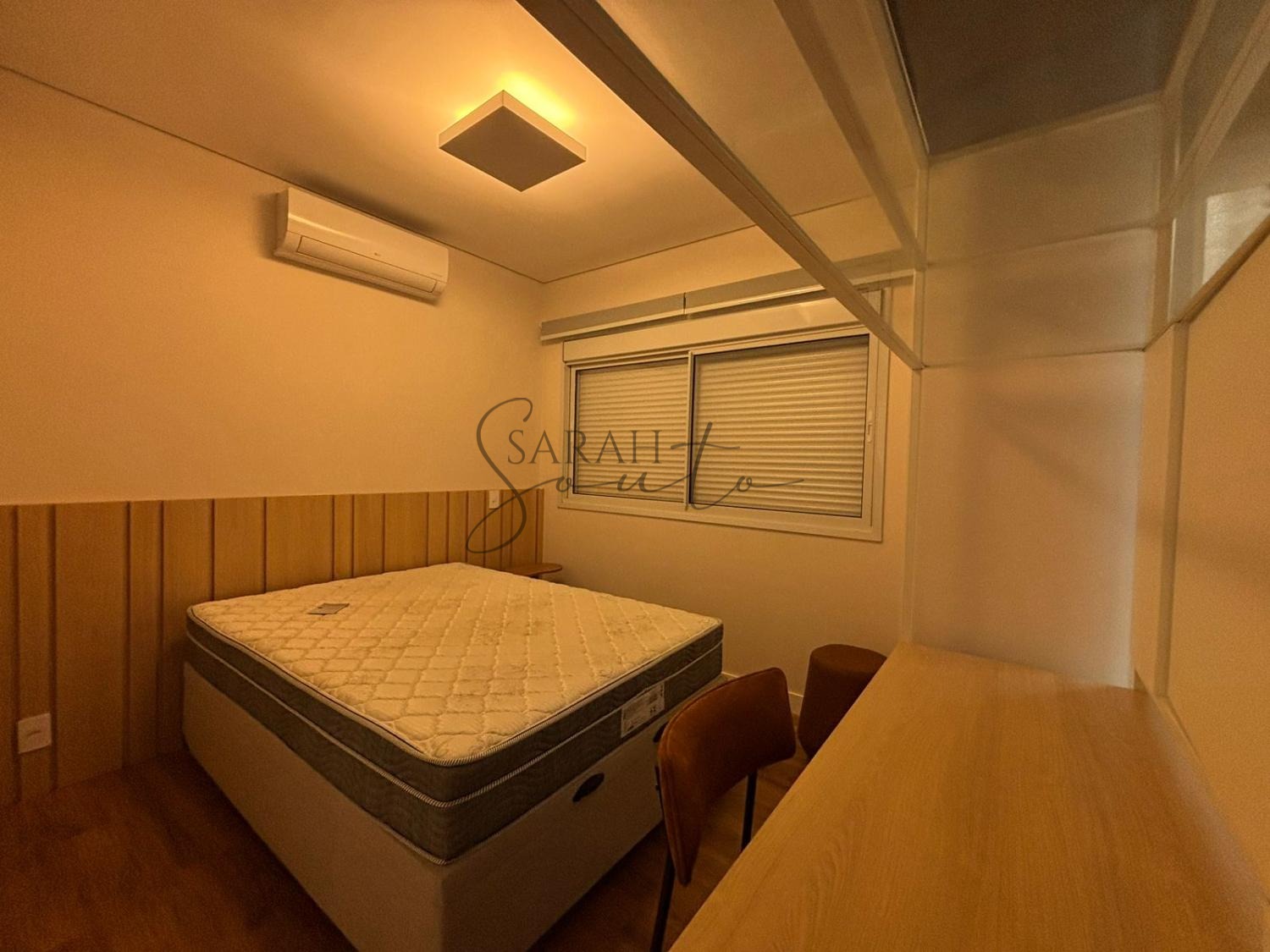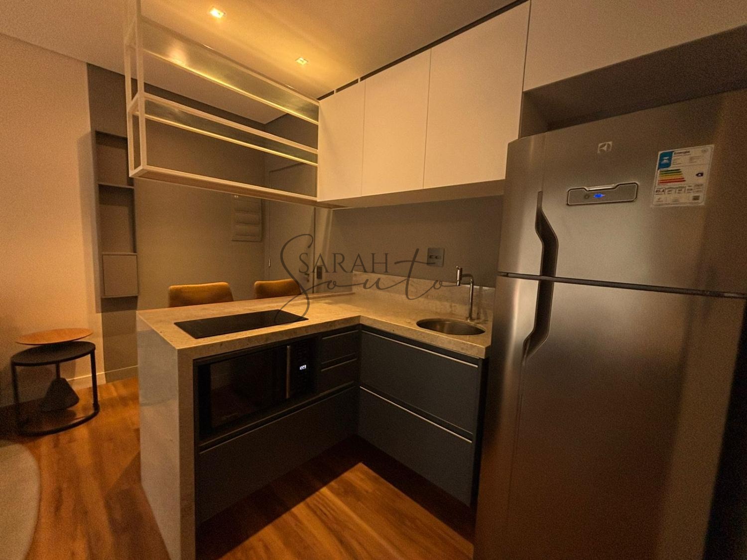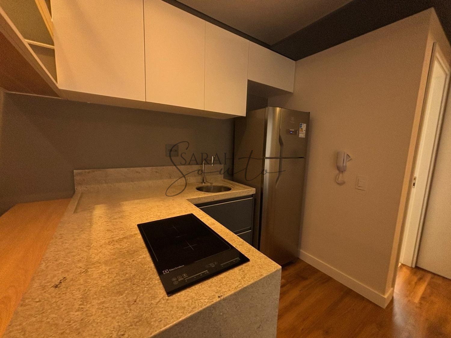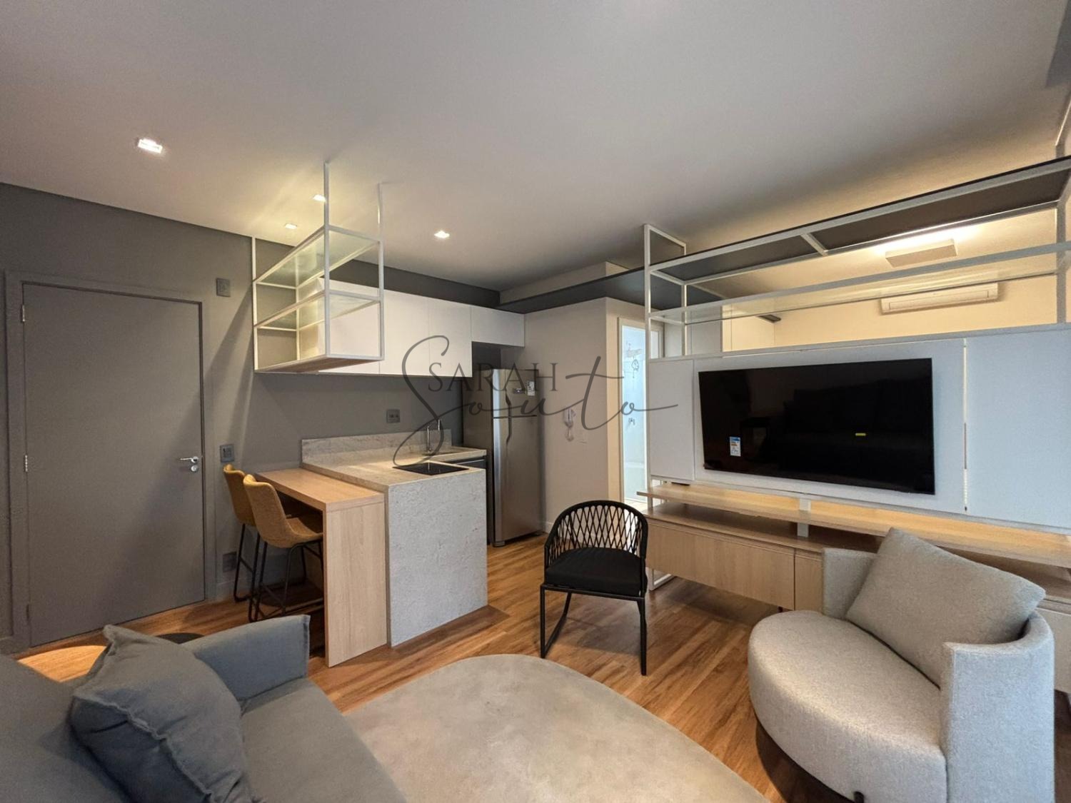 Apartamento mobiliado com 1 quarto, 1 banheiro, sala para dois ambientes com sacada, cozinha planejada e 1 vaga de garagem.