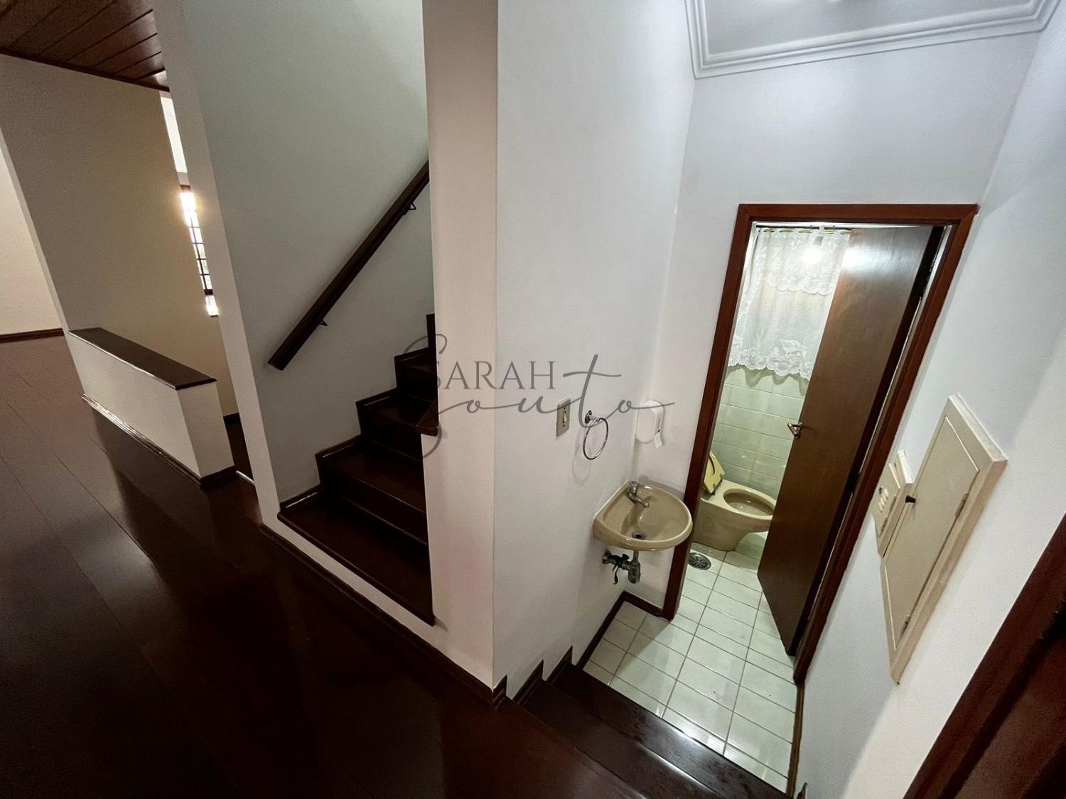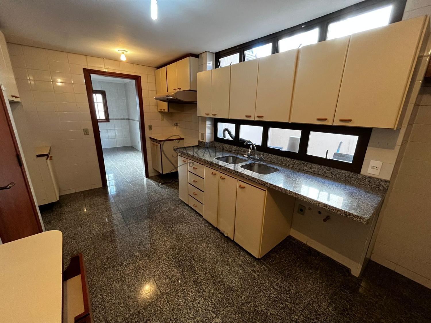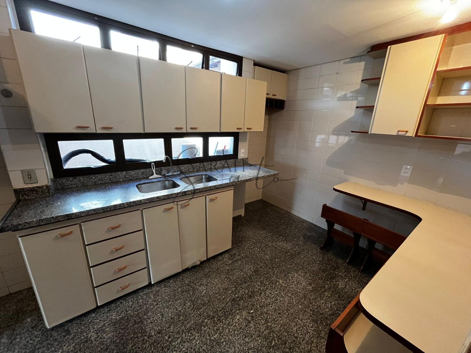 A cozinha é planejada, com copa anexa, e há um escritório com biblioteca planejada. Dependências incluem quarto de empregada com armário embutido e banheiro completo, lavanderia interna espaçosa e externa com tanque e varais, adega, despensa e quarto de despejo.