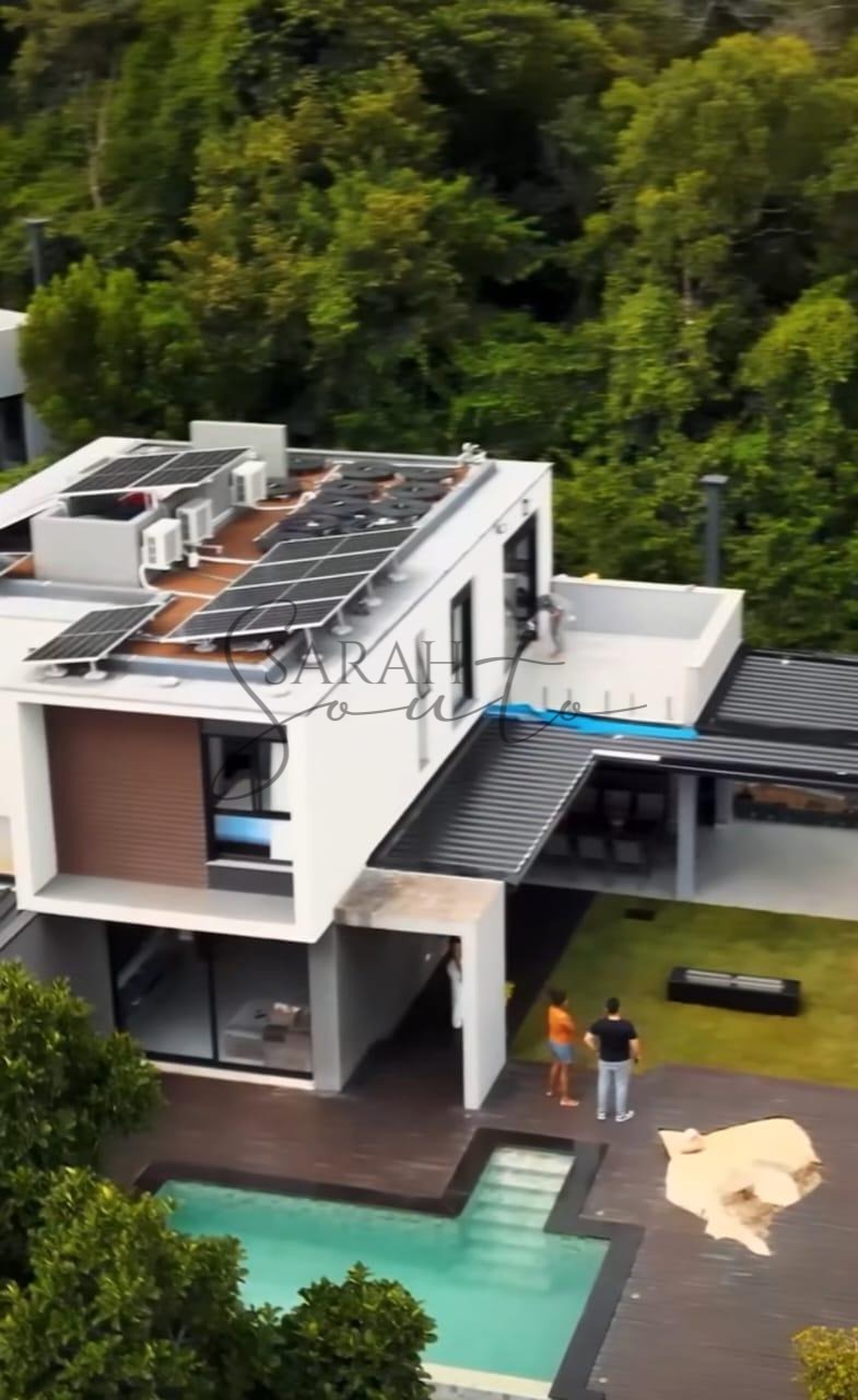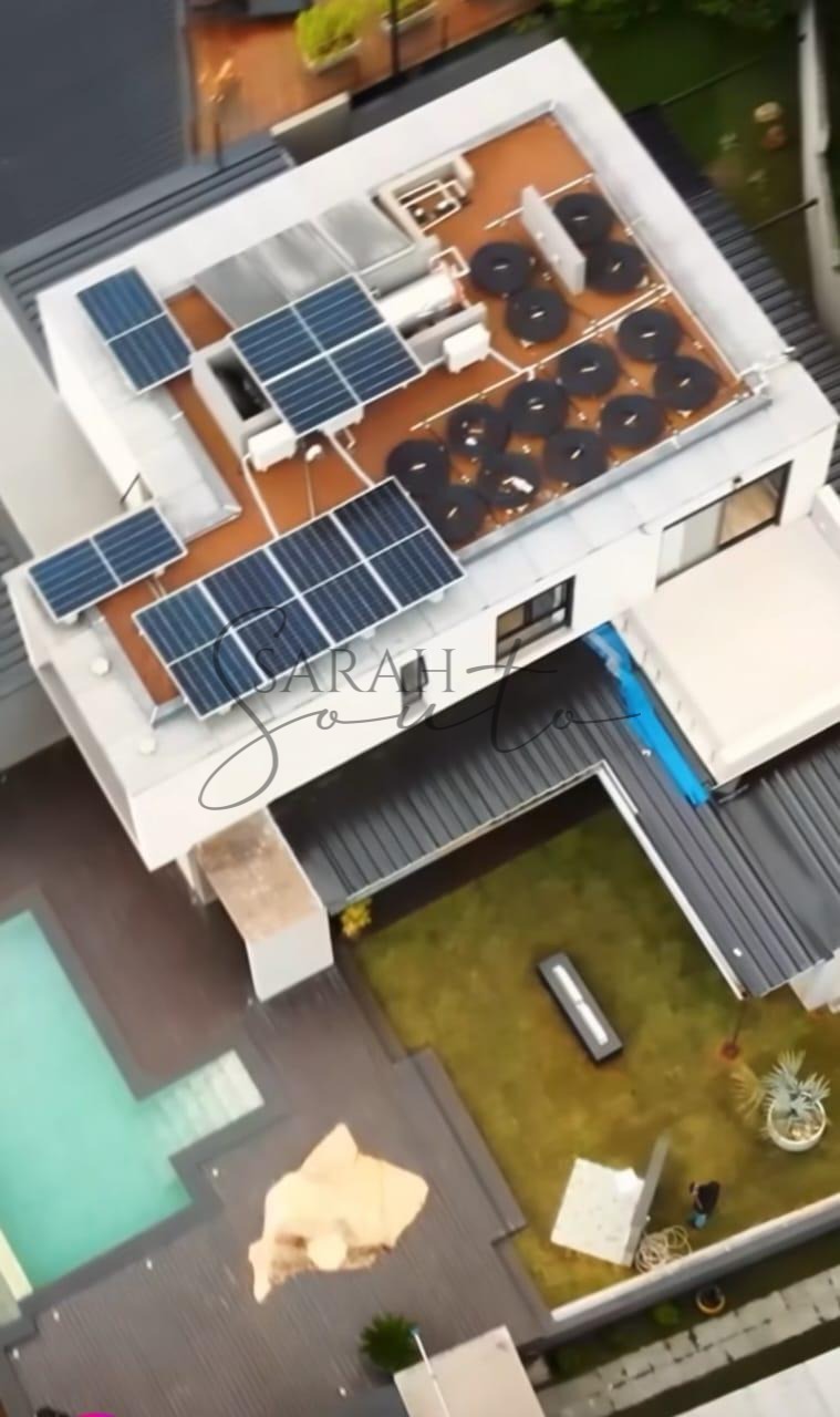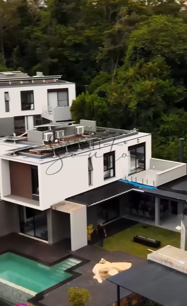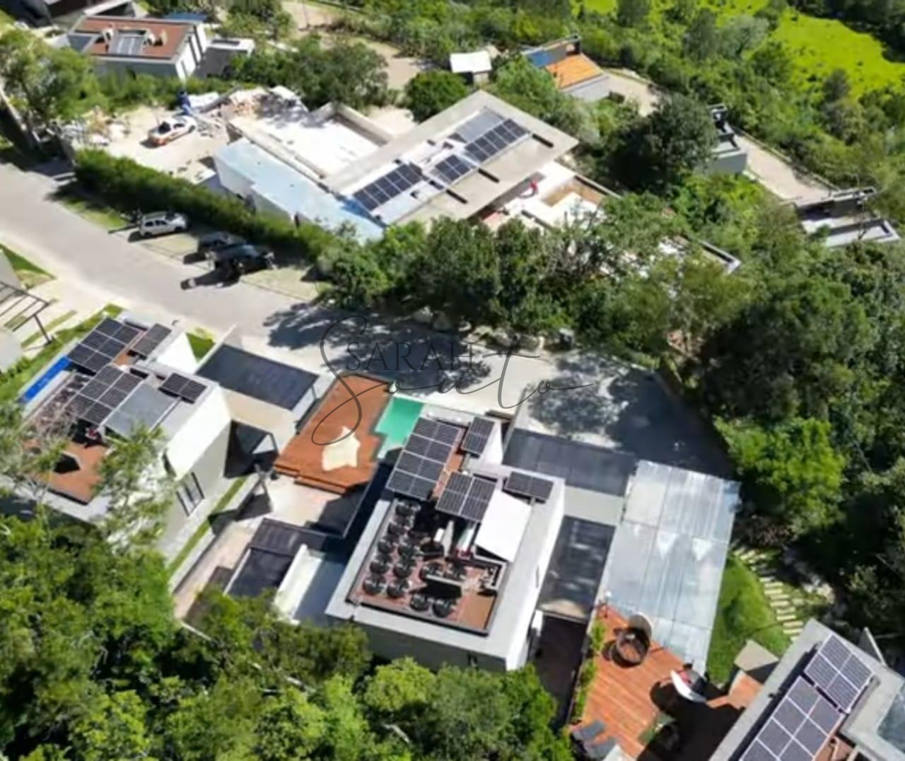 A casa alia sofisticação com eficiência energética. Possui sistema completo de energia solar, boiler com apoio elétrico e energia fotovoltaica com painéis de 570W e microinversores canadenses (AP Systems), além de dois carregadores para carro elétrico já instalados.