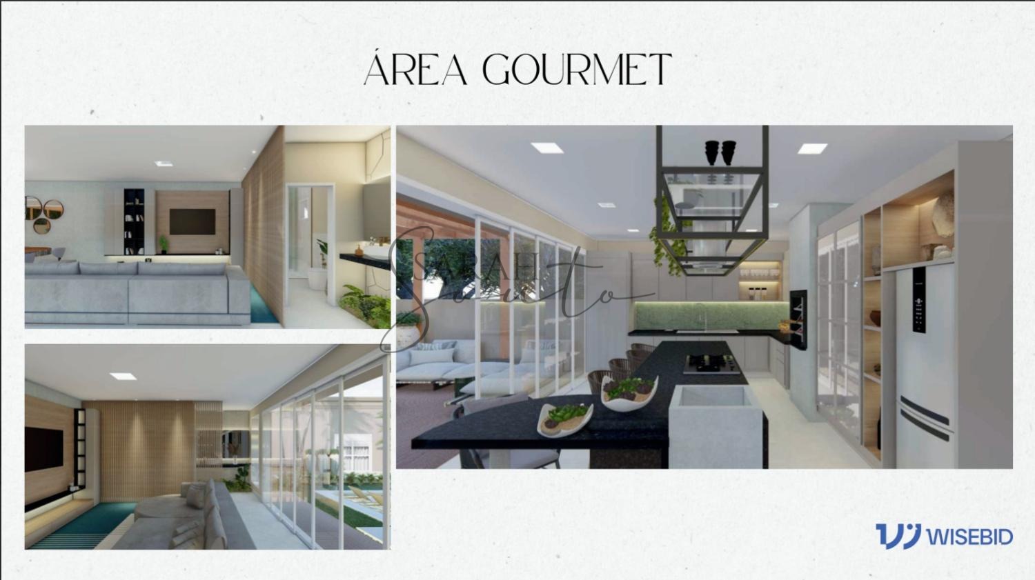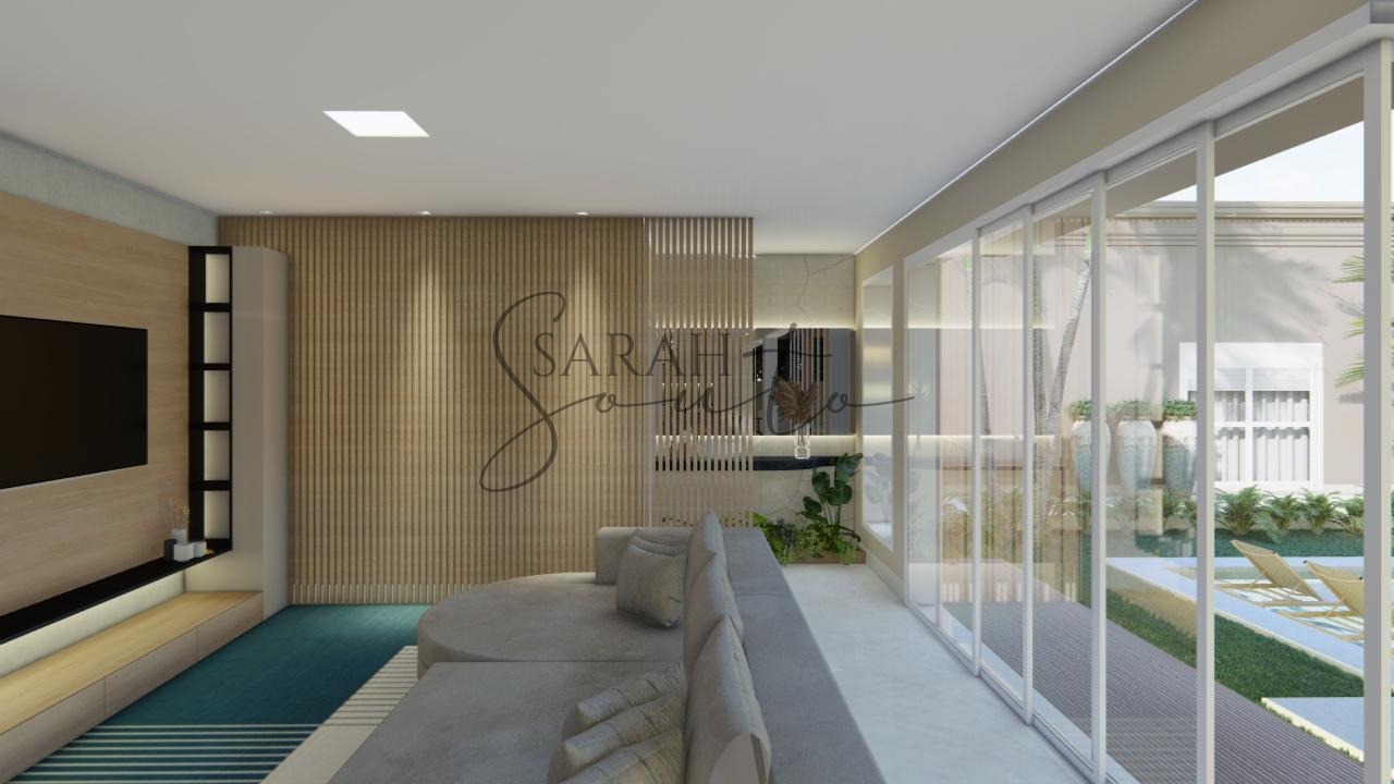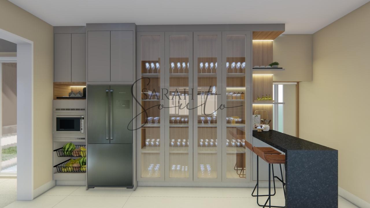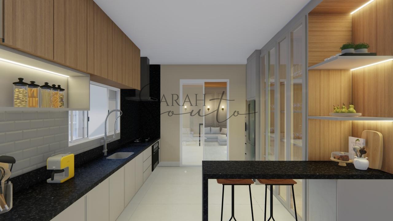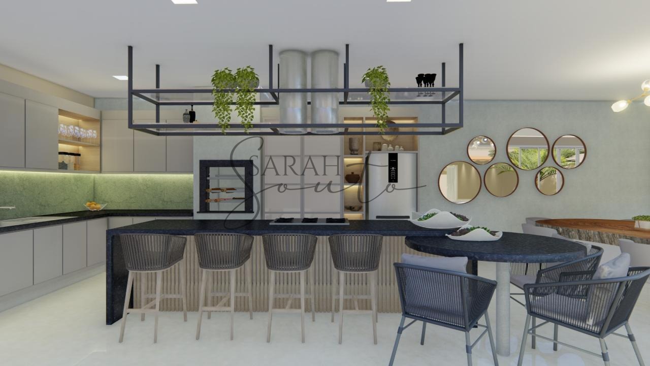 Logo na entrada, a amplitude dos espaços é ressaltada pelo pé-direito duplo da sala de estar, que se abre para o cenário natural à frente. O projeto contempla uma suíte master com closet, além de dois dormitórios também com closet, garantindo privacidade e praticidade. Ambientes como a sala de televisão, o mezanino e a cozinha planejada, acompanhada de despensa e área de serviço com armários sob medida, traduzem a funcionalidade aliada ao requinte.