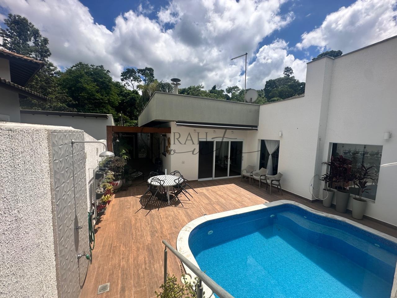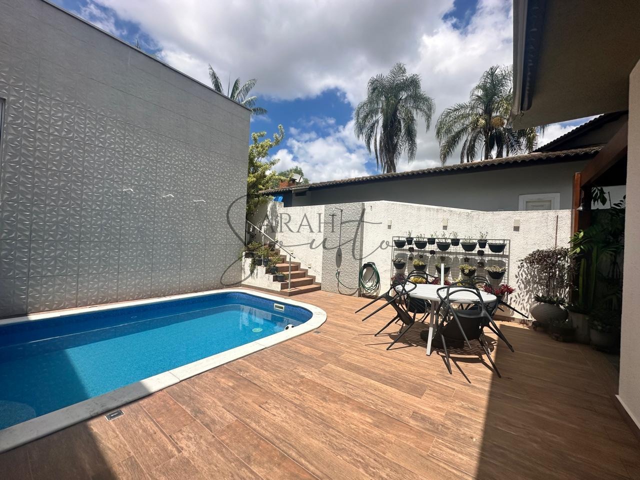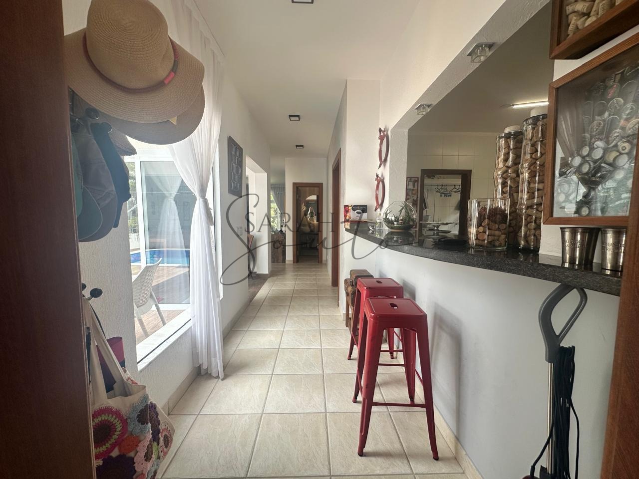 A área externa oferece piscina com infraestrutura para aquecimento, banheiro de apoio, corredores laterais e vista para bosque e área de preservação, garantindo privacidade e tranquilidade. A casa conta ainda com sistema de energia solar atendendo os banheiros, proporcionando economia e sustentabilidade.