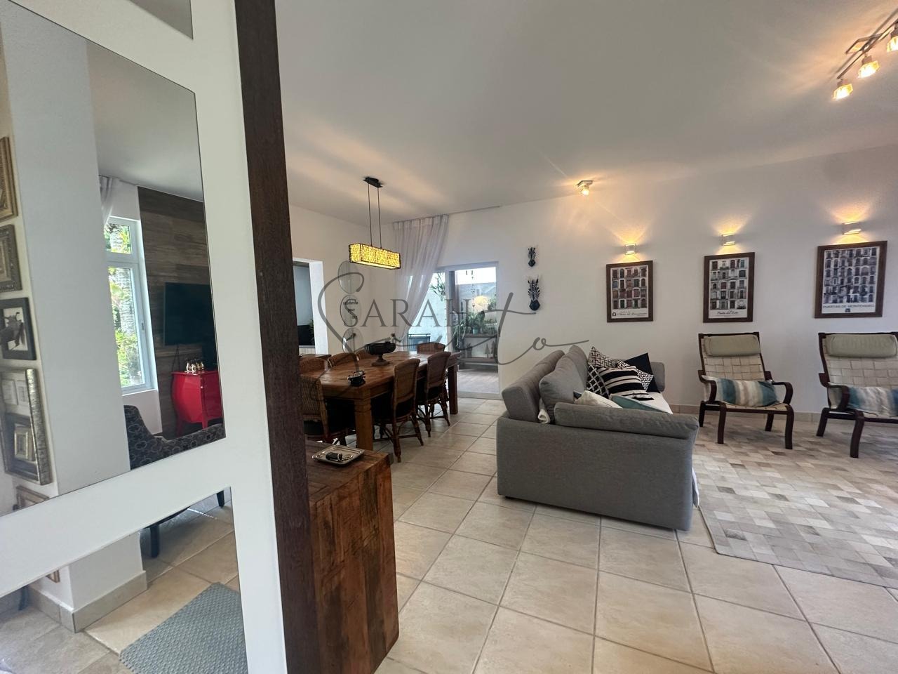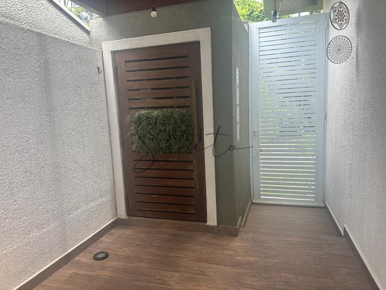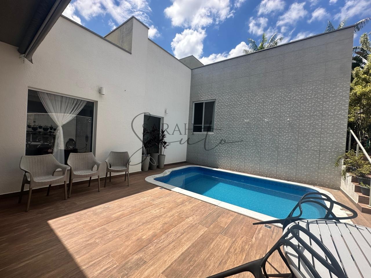 A área externa oferece piscina com infraestrutura para aquecimento, banheiro de apoio, corredores laterais e vista para bosque e área de preservação, garantindo privacidade e tranquilidade. A casa conta ainda com sistema de energia solar atendendo os banheiros, proporcionando economia e sustentabilidade.
