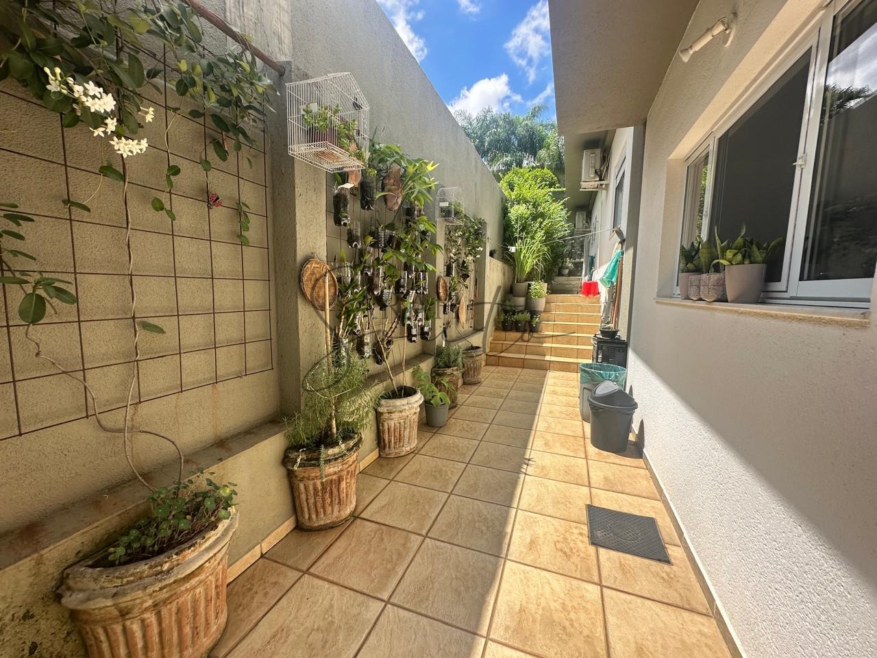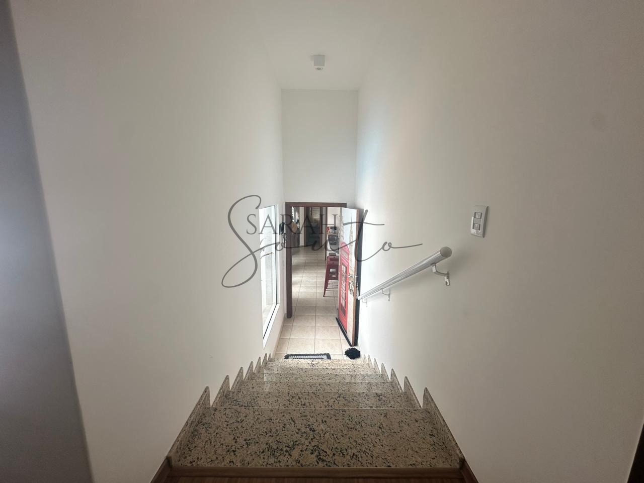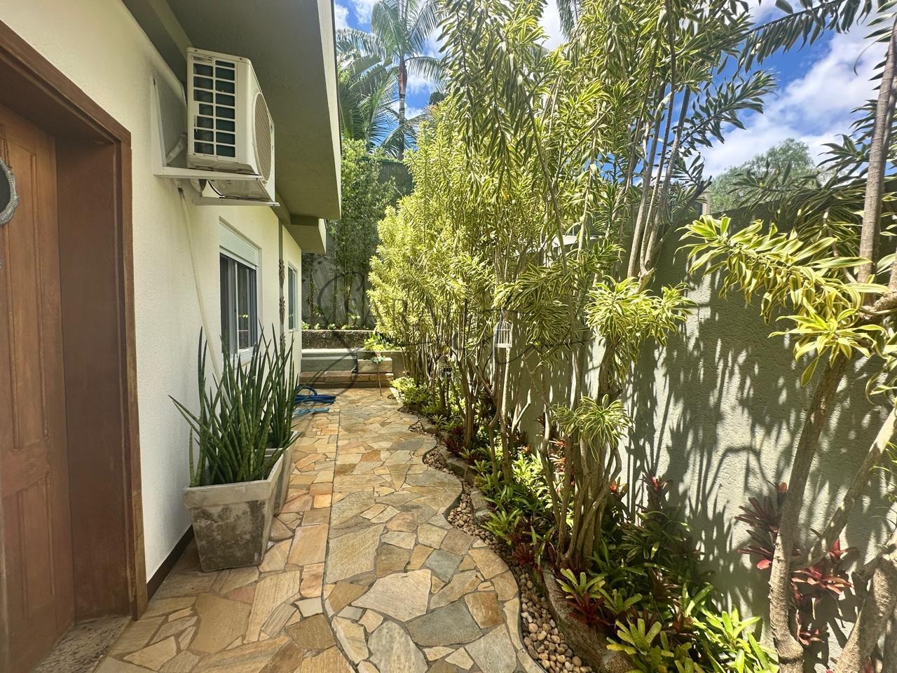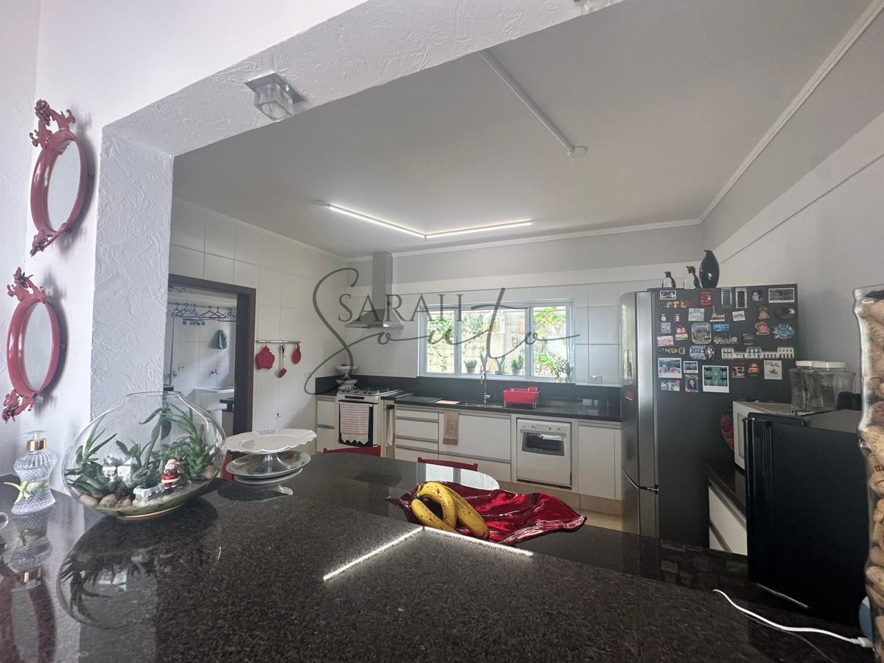 Casa praticamente térrea, com apenas um lance de escada para os dormitórios, além de área de serviço, despensa e garagem para 4 veículos (2 cobertos e 2 descobertos).