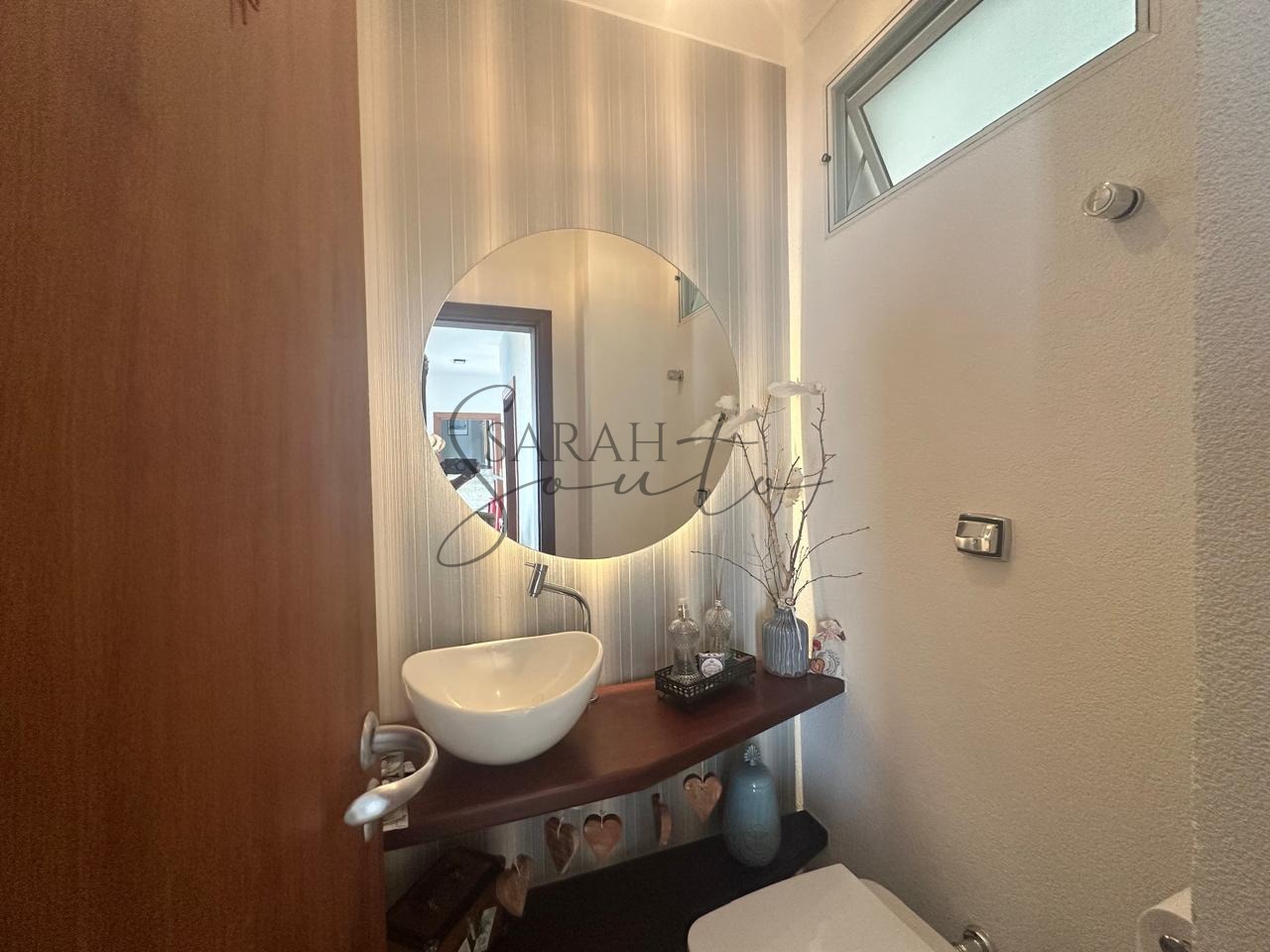 Possui 3 dormitórios, sendo 1 suíte com closet, todos com ar-condicionado e armários planejados, além de escritório, sala de TV, sala de estar e sala de jantar integradas à área gourmet. A cozinha é aberta, com balcão, armários planejados em conceito moderno e funcional. A sala conta com infraestrutura para ar-condicionado.